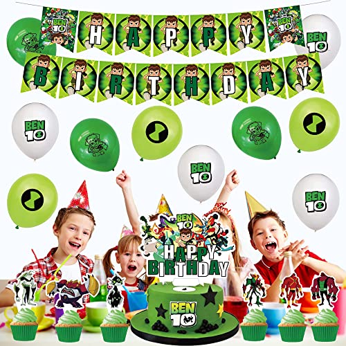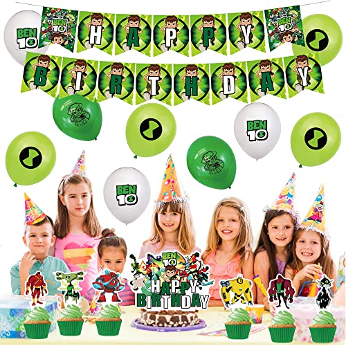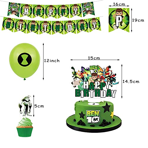 Decorazione per Feste di Compleanno Ben 10 Palloncino Felice Compleanno Striscioni Topper per Torta per Bambini Ben 10 Decorazioni di Compleanno