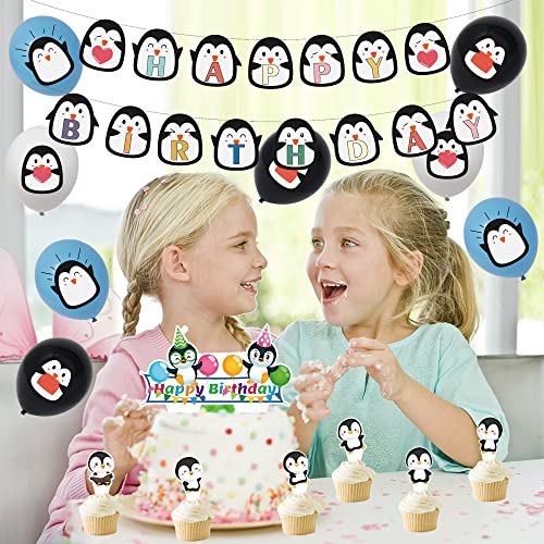 Decorazione per Feste di Compleanno Penguin Palloncino Striscioni di Buon Compleanno Pinguino Torta Decorazione per Bambini Forniture Decor per Feste a Tema Pinguino