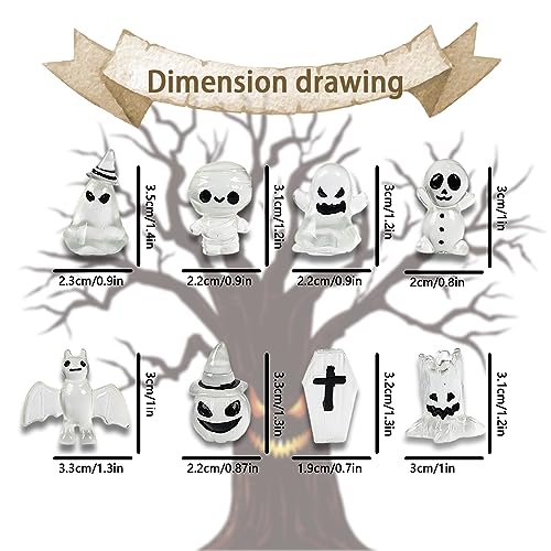 【Decorazioni per feste di Halloween】8 diversi mini ornamenti luminosi di Halloween, ognuno con un atteggiamento e un'espressione diversi. Le dimensioni di queste statue di gnomi da giardino sono di circa 2-4 cm ciascuna. Gli ornamenti luminosi in piedi e seduti non sono della stessa dimensione. Sono la decorazione perfetta per Halloween e per i micro paesaggi!