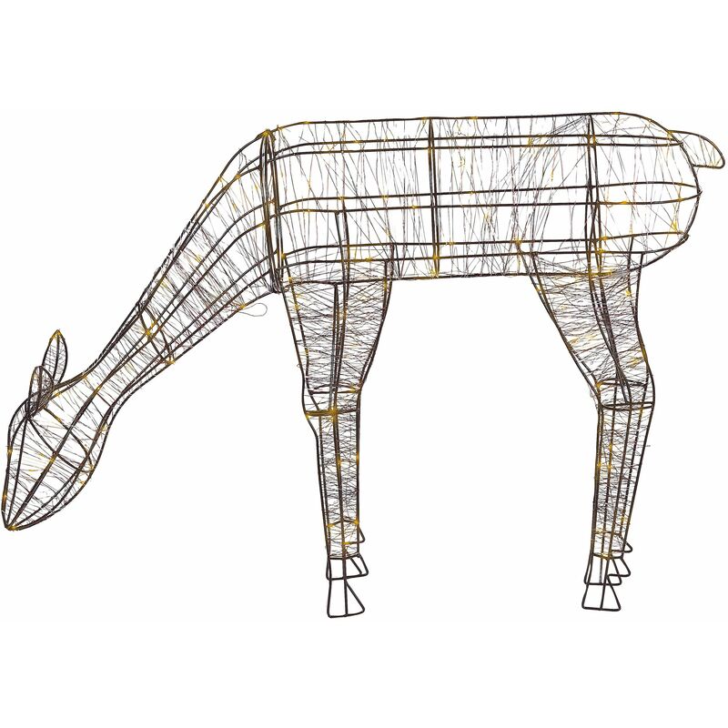 Decorazione natalizia illuminata per esterni ed interni. Questo affascinante cerbiatto è un'ottima decorazione da giardino per il periodo natalizio. Grazie alle luci a LED, crea un'atmosfera magica in qualsiasi ambiente esterno. L'arredamento è realizzato in ferro di alta qualità e ti servirà per molti anni a venire. Dettagli: Tipo di prodotto: Decorazione LED Stile: Moderno Colore principale: Nero Temperatura colore LED: Bianco caldo Tipo di materiale: Metallo Materiale principale: Ferro Materiale secondario: Rame Potenza elettrica: 6W Codice IP di protezione: IP 34 (Protezione da spruzzi) Flusso luminoso LED: 3 Lampadine richieste: 360 Voltaggio: 4.5 V Dimensioni: Lunghezza del cavo: 500 cm Profondità: 26 cm Larghezza: 103 cm Altezza: 70 cm Peso: 2 kg L'offerta include: 1 x Decorazione Caratteristiche chiave: Perfetto come decorazione originale, Cavo lungo per la massima comodità di utilizzo, Design classico con un tocco di moderno, Sia per interno che esterno, Illuminazione LED