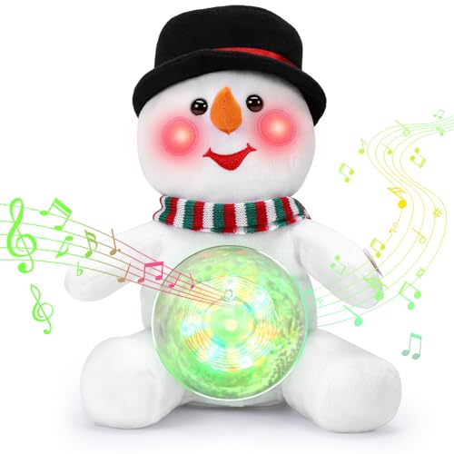 Decorazione Natalizia Musicale con Palla di Neve, Aceshop 11" Pupazzo di Neve Giocattoli di Peluche con Musica e Luci Giocattolo di Peluche che Canta Bambola di Pezza per il Regalo dei Bambini