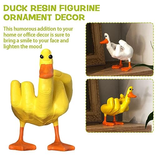 Decorazione dell'ornamento della statuetta della resina della piccola anatra divertente, carino anatra dito medio- Figurina Duck You, Sculture Statue per la decorazione domestica ( Color: Yellow )