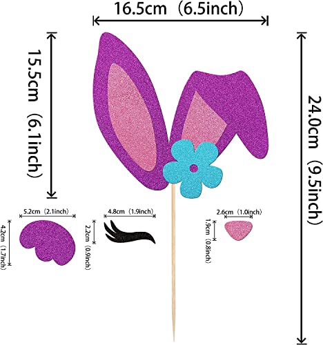 1 decorazione pasquale con orecchie di coniglio, decorazione per torte, topper con ciglia, naso, zampa, cupcake, decorazione per Pasqua, conigli, accessori per feste di compleanno, rosalila
