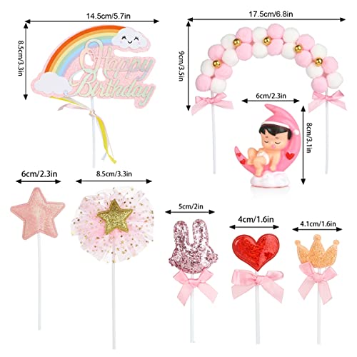 Decorazione per torta per baby shower: 1 topper per torta con scritta in lingua inglese "Alles Gute zum Geburtstag", 1 topper per torta rosa, 1 decorazione per torta per bambine, 1 decorazione a forma di stella, 1 topper a forma di cuore, 1 corona, 1 coniglietto, 1 topper a rete a stella.