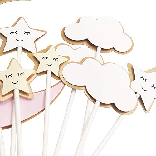 Decorazione per torta con nuvole di luna e stelle, per compleanno, per anniversario di matrimonio, rosa