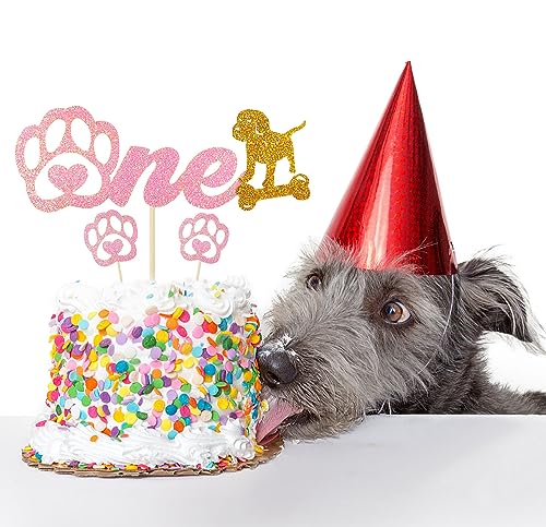 Decorazione per torte di compleanno per cani, decorazione per torte per 1 compleanno, decorazione per torte, per bambini, cani, decorazione per feste (One Rosa)