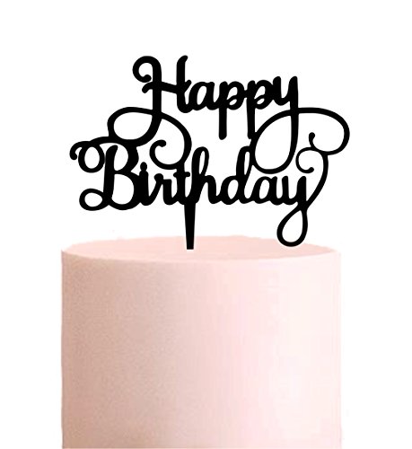Decorazione per torte con scritta “Happy Birthday”, per compleanno, in acrilico Nero