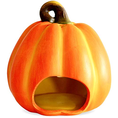 Decorazione con zucca con candela al LED, autunnale e per Halloween, 19 x 21 cm, in terracotta, con luce a LED a pile, effetto tremolante come nei lumini veri