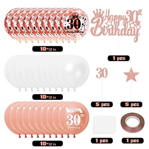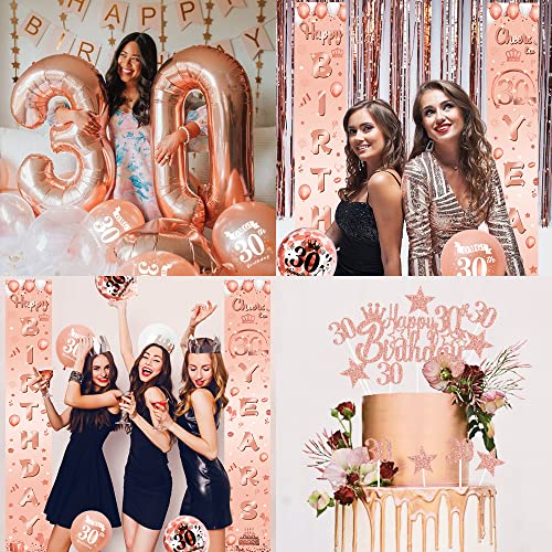 【Elegante Decorazioni Compleanno 30 Anni】 30° FESTA DI BUON COMPLEANNO in oro rosa abbinato a palloncini specifici per il 30°, perfetto per decorazioni per feste, può anche essere decorato per porte, casa, parete, giardino, stanza, tovaglia, carta da parati, soffitto, crea bellissime colonne, centrotavola e anche sfondi per se