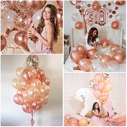 【30 Anni di compleanno】Compleanno 30 *1 (NOTA BENE: 32inch 40 palloncino digitale non può volare in aria dopo il gonfiaggio), 30 anni Compleanno Banner*1, RoseGold Palloncini Coriandoli *4, Palloncino Compleanno 30 *6, palloncini in lattice *20, 10inch Pompoms (6 pezzi), glitter carta ghirlanda piccola rotonda decorazione del partito *1 (2m), stella foglia palloncini *2, nastro palloncino *2, 1pcs "Happy Birthday 30" cake topper