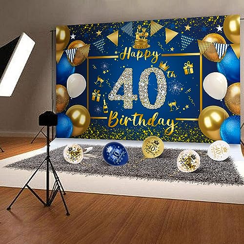 Decorazioni 40 anni Compleanno per Uomo, VICTERR Blu Oro Palloncini 40 anni Dcorazioni, 40 anni Bianca Oro Feste Compleanno Striscione Sfondo Palloncini Kit