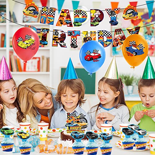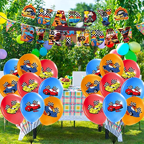 Decorazioni per auto da corsa di compleanno, Miotlsy Accessori per feste di compleanno Banner Palloncini di compleanno da corsa per Bambini Ragazzi Racing Forniture per Feste di Compleanno 48 Pcs