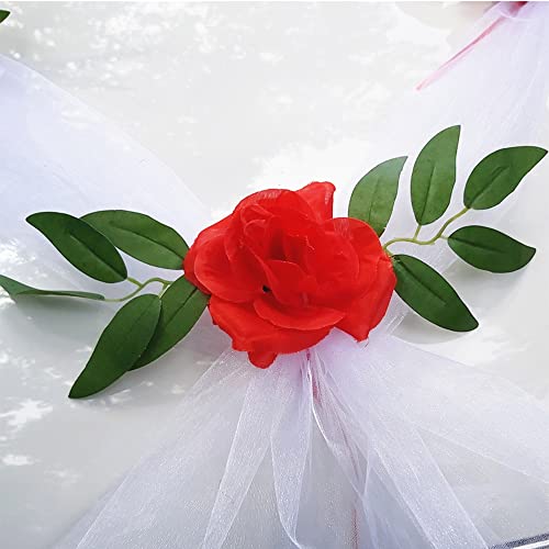 Materiale: questa decorazione per auto da matrimonio è realizzata con garza e fiori artificiali con una lavorazione squisita, sembra molto simile a una vera rosa in fiore.