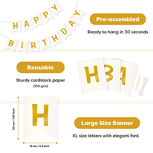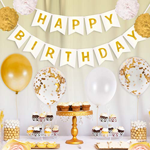 Decorazioni Compleanno Bambina | Striscione Buon Compleanno, Pompon e Palloncini | Festoni Compleanno | Addobbi per feste di Compleanno | Decorazioni Compleanno Oro e Bianco per adulti e Bambine