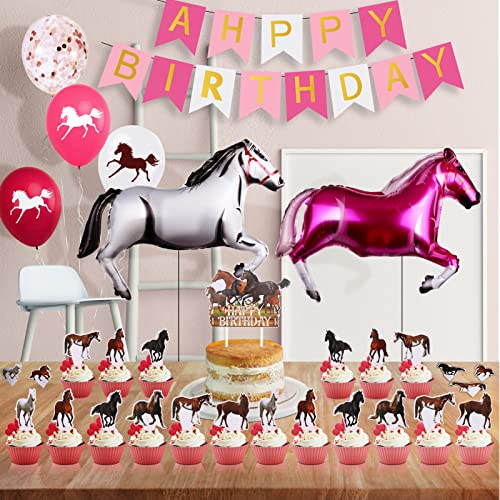 32 decorazioni di compleanno per cavalli, ragazze, decorazioni per il compleanno dei bambini, palloncini a cavallo, decorazioni per torte e cavalli, Happy Birthday Banner (A)