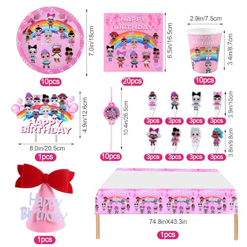 【Design carino】 Le stoviglie per feste sono progettate con un classico motivo da ragazza dei cartoni animati, molto delicato e amato dai bambini, le simpatiche stoviglie per feste di compleanno lol aggiungeranno attrattiva alla tua festa.