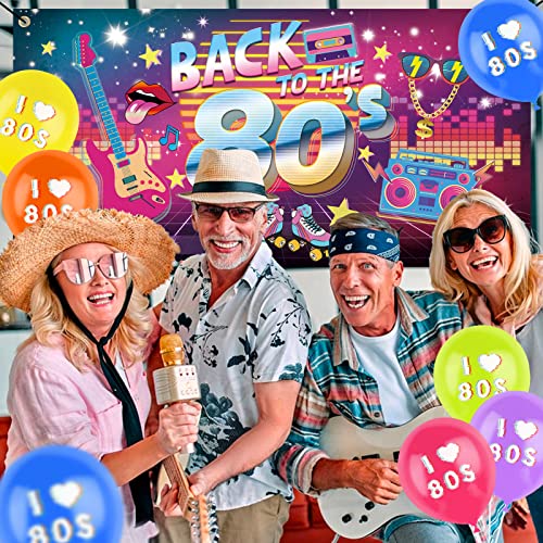 Decorazioni Feste Anni 80 1*Striscione 180 x 90 cm +12*Palloncini Banner Sfondo Back to the 80'S Palloncini Colorati I Love 80s Decorazioni Tema Ritorno Retrò Anni '80