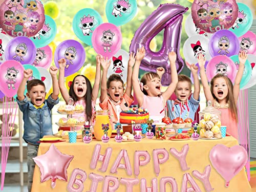 Decorazioni di Feste di Compleanno Surprise Doll 58 pcs, Palloncino, Palloncino Numero 4, Striscioni di Buon Compleanno, Cupcake Topper, Decorazioni per Feste di Compleanno per Bambini