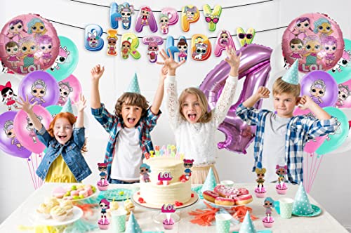 Decorazioni per Feste di Compleanno Surprise Doll 54 pcs, Palloncino, Palloncino Rosa Numero 4, Cupcake Topper, Striscione di Buon Compleanno, Decorazioni per Feste a Tema Forniture