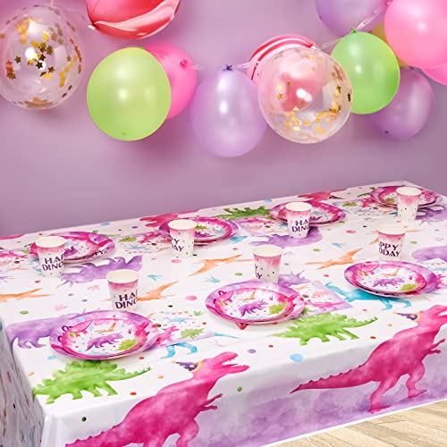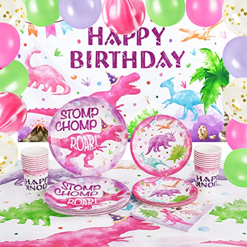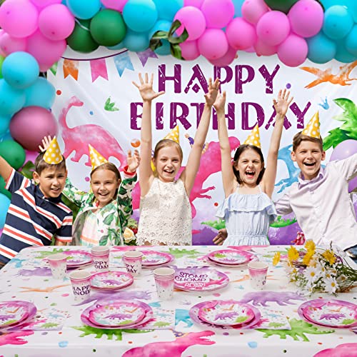 Decorazioni per Feste con Dinosauri - Forniture per Feste di Compleanno di Dinosauri ad Acquerello 88 Pezzi per Ragazze Bambini Sfondo Tovaglia Palloncini Piatti Tazze Tovaglioli Serve 16 Ospiti