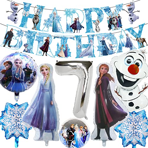 Decorazioni per feste Frozen,Frozen 7 Anno Compleanno Palloncino-Striscione di buon compleanno,Principessa in lattice e stagnola,bambini Decorazione per feste a tema per ragazzi