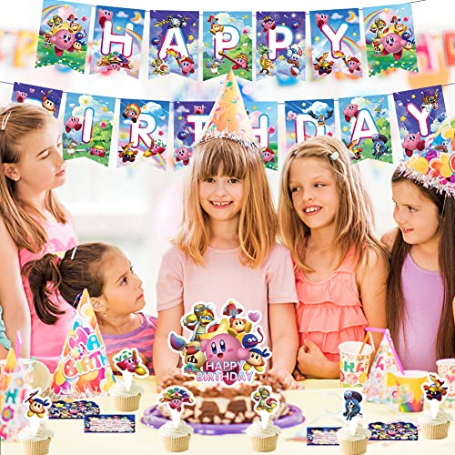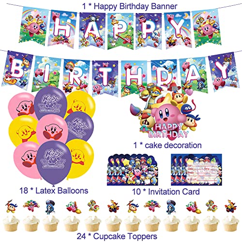 Set Decorazioni Per Feste Kirby BESTZY 54 pezzi Party Decorations Set Kirby Decorazioni Compleanno Includono Striscioni Buon Compleanno/Palloncini/Decorazioni per Cake per Bambini
