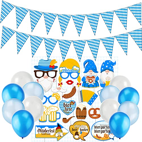 Decorazioni per feste Oktoberfest Striscione Oktoberfest 10m Ghirlanda di pennant 12 pezzi Palloncini 26 pezzi puntello cabina fotografica per decorazione della festa prato bavarese dell'Oktoberfest