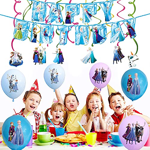 Decorazioni Per Feste a Tema Congelato,44Pcs Decorazioni Di Compleanno Frozen Palloncini Striscioni Di Buon Compleanno Torta Topper Congelata Decorazioni Spirale Per Torta Diy Per Bambini