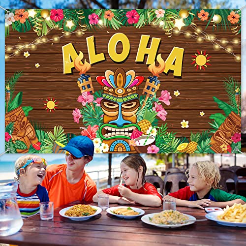 Decorazioni per Feste Tropicali Tiki Luau, Banner di Sfondo Aloha Hawaiano Forniture per Feste a Tema Fiori di Ibisco Foglia di Palma per Decorazioni Hawaiane per Feste Aloha Luau
