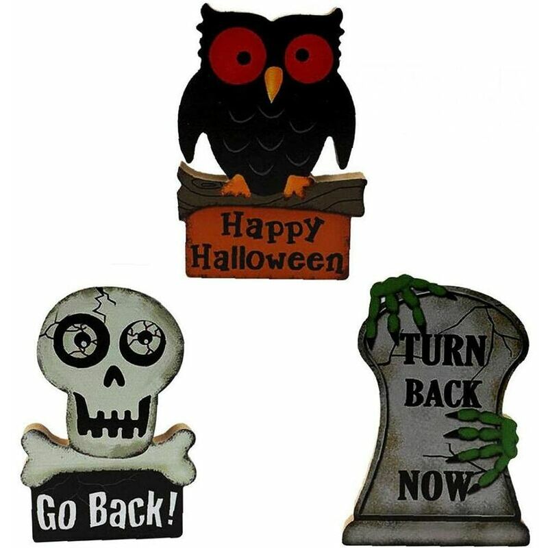 Accessori di Halloween: questi segni di Halloween in legno sono accattivanti e attraenti, il che ti darà un buon effetto decorativo, rendendo l'intero ambiente pieno di atmosfera horror Squisito: l'arredamento del centrotavola di Halloween è squisito, che è progettato in forme diverse, mostrando completamente gli elementi di Halloween Materiale: le decorazioni di Halloween realizzate in legno naturale e stabile sono resistenti, innocue, inodori, affidabili, riutilizzabili, che non si deformano o si rompono facilmente, garantendo un uso a lungo termine Multiuso: gli ornamenti per desktop di Halloween possono essere utilizzati per varie occasioni, come Halloween, feste a tema horror o altre festività Occasioni applicabili: gli ornamenti da tavolo Happy Halloween sono ampiamente utilizzati in stanze, uffici, tavoli, ecc., per darti un buon divertimento visivo