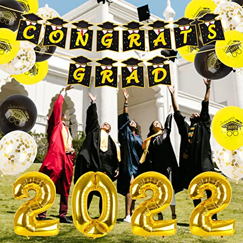 Decorazioni di Laurea Banner di Laurea 2022 Palloncini per feste di laurea Decorazioni per la laurea nere e dorate Congratulazioni Banner per laurea 2022 Palloncino Laurea Congratulazioni Palloncini