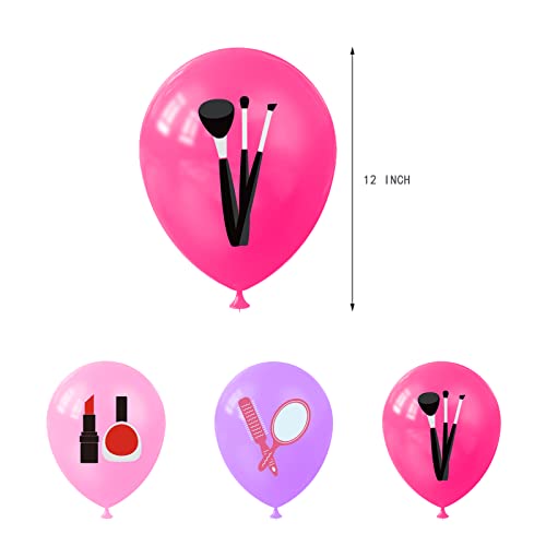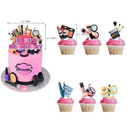 Forniture per feste di compleanno di trucco: Il pacchetto include 1 set make up banner di buon compleanno, 1 pz trucco Happy Birthday cake topper, 6 pz make up spirale, 12 pz trucco cupcake topper, 18 pz make up palloncini (6 rosa, 6 viola, 6 rosa rosso), 1 nastro, 1 dispensazione. Questo abito da festa di grande valore soddisfa le vostre esigenze di decorazione diversificate