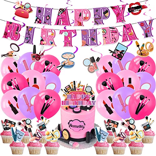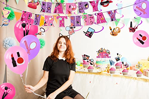 Decorazioni del partito spa Decorazioni del partito di compleanno di trucco Include Spa Banner di buon compleanno,Spirali,Torta Topper,Cupcake Toppers, Palloncini per forniture del partito di trucco