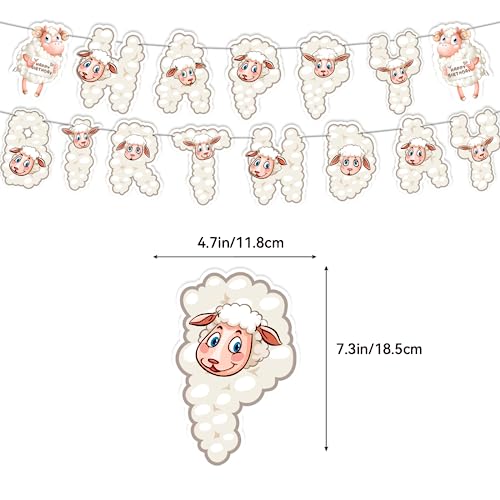 Forniture di festa di compleanno di pecora: Il pacchetto include 1 * bandiera di compleanno di pecora, 1 * topper torta di pecora, 6 * spirale di pecora, 12 * topper cupcake a tema di pecora, 18 * palloncini di pecora.