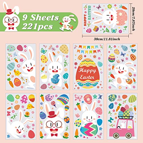 Decorazioni Pasquali per la Casa, 211 Adesivi Pasquali per Finestre con Coniglietto Dell'Uovo di Pasqua, 9 Foglie Vetrofanie Pasquali Easter Decorazioni per Finestre Primaverili