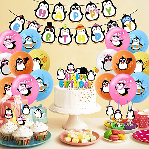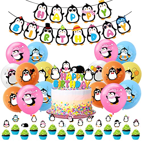 Decorazioni Pinguini Compleanno 37 Pezzi,Palloncini Pinguini, Compleanno Striscioni,Kit Festa Compleanno Pinguini,Decorazioni Torta Pinguino,Pinguino Cupcake Toppers,Bambini Compleanno Feste