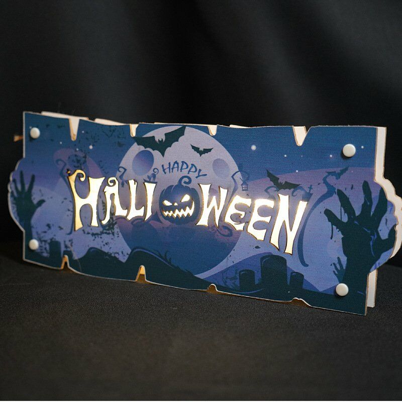 Specifica:Nome: Luce notturna del numero civico di Halloween: 160gTaglia: 31 * 2,5 * 11,5 cm /12,20 * 0,98 * 4,53 pollici Batteria applicabile: Batteria AA (sono necessarie 2 batterie AA, il prodotto stesso non contiene batterie) Lista di imballaggio: 1 * Decorazione per porta di Halloween