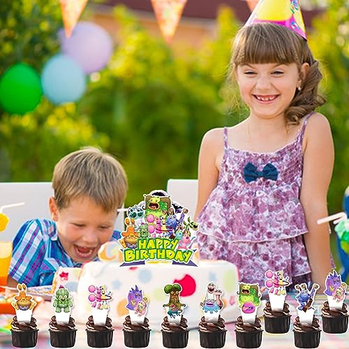 Decorazioni Torta Singing Monsters, 25 Pezzi Singing Monsters Cake Topper, Kit Topper Cake Singing Monsters, Singing Monsters di Ghiaccio Cake Topper,Per Matrimonio,Festa Di Compleanno e Baby Shower