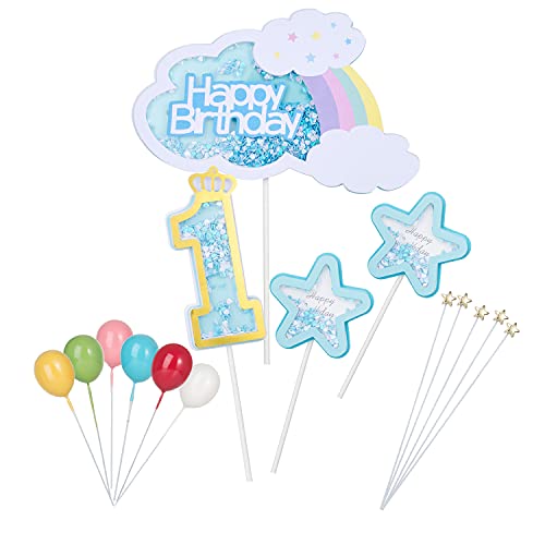 Decorazioni per torte blu glitterate Ragazzi, Palloncini arcobaleno Stelle Topper per cupcake Spille Stuzzicadenti per il 1 ° anni primo anno Decorazione per feste di compleanno per bambini del primo