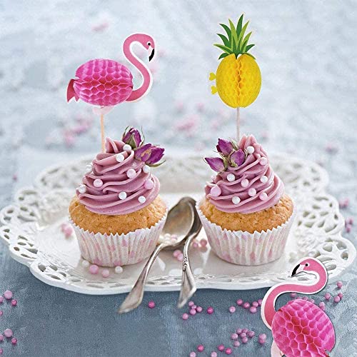 Decorazioni per Torte Hawaii,3D Flamingo Pineapple DIY Cupcake Topper 50 pz Picks Snack Cupcake Decorazioni per Festa Estiva, Torta di Festa Luau Tropicale, Torta di Scelte, Festa di Matrimonio