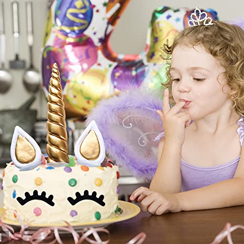 Specifica: corno di unicorno, 2 orecchie e 2 ciglia, ideale per compleanno, festa e torta nuziale, attraente colore dorato.