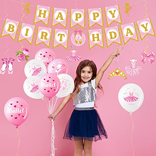 40 Decori per Feste Ballerine Banner di Compleanno di Balletto Centrotavola Ballerina Forniture per Feste di Compleanno di Balletto Carte di Ragazze Danzanti Palloncini Rosa Balletto