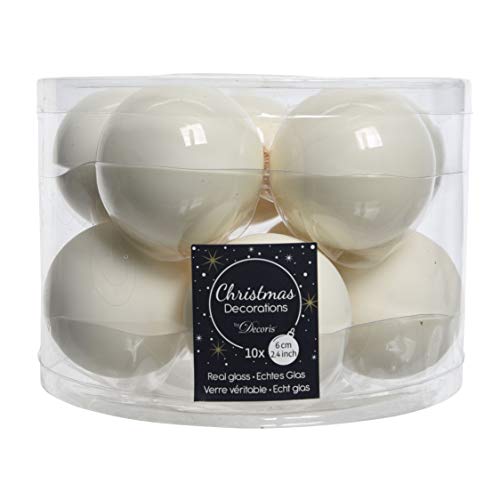 Decoris Palla di Natale in Vetro, Bianco Lana, 6 cm