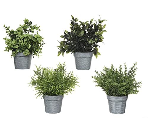 Piante verdi artificiali, piante artificiali in vaso: rosmarino, maggiorana, basilico, bouquet di erba, materiale del vaso: plastica - Materiale: plastica - poliestere, colore: verde - grigio