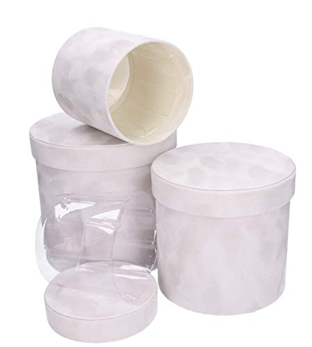 MATERIALE MISTO E IMPILABILE: le scatole rotonde sono realizzate in cartone riciclato e rivestite in tessuto all'esterno. L'inserto in plastica garantisce un cartone asciutto nei fiori bagnati. Le scatole sono impilabili e quindi in ordine di spazio.
