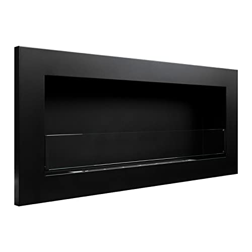 Decorspace Camino a Bioetanolo da incasso in Acciaio Nero da 2,5 Kw arredamento Moderno 90 cm con Vetro