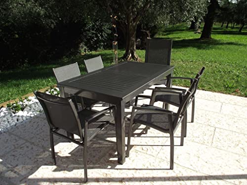 Decorspace Tavolo allungabile "Ibiza" in alluminio dogato da esterno per giardino e veranda (Tavolo 150-210 x 90 cm + 6 Sedie, Antracite)