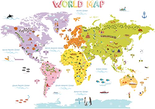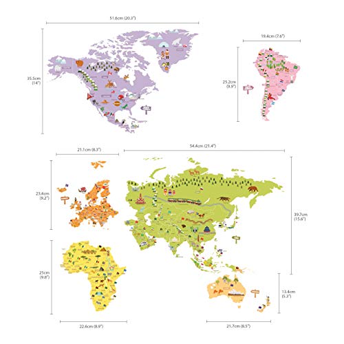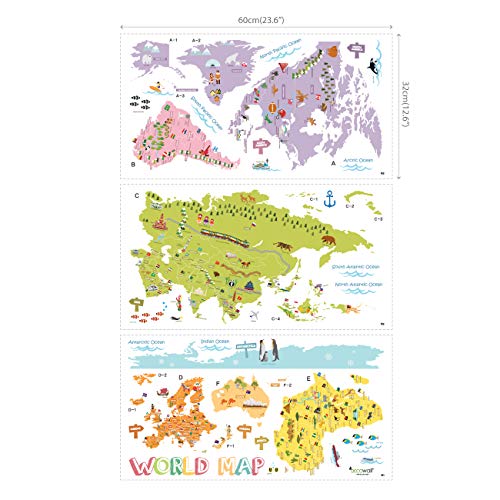 DECOWALL DAT-1306N Mappa del Mondo Colorato (Grande) (Ver. Inglese) Adesivi da Parete Decorazioni Stickers Murali Soggiorno Asilo Nido Camera Letto per Bambini decalcomanie
