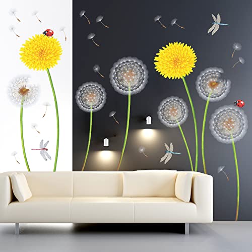 DECOWALL DC-2122 - Adesivo da parete grande con dente di leone giallo, motivo: fiori volanti, rimovibili, per cameretta dei bambini, camera da letto, soggiorno, arte, decorazione per la casa