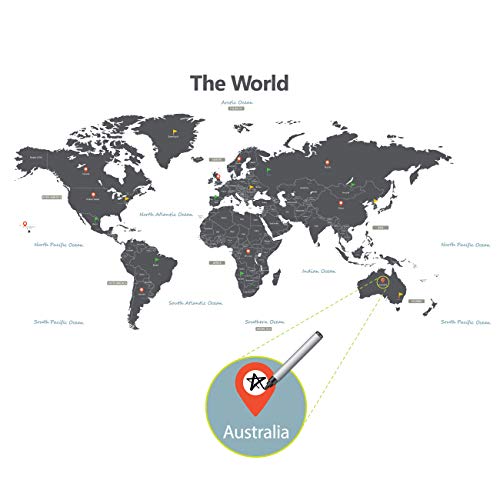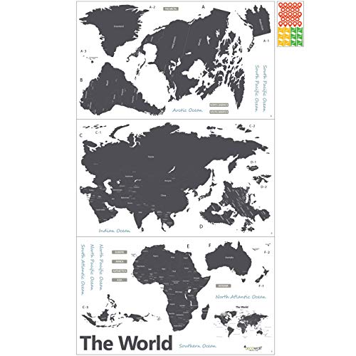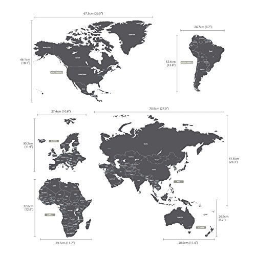 DECOWALL DLT-1609G Mappa del Mondo Moderno Grigio Adesivi da Parete Decorazioni Parete Stickers Murali Soggiorno Asilo Nido Camera da Letto per Bambini (Extra Grande) (Ver. Inglese)